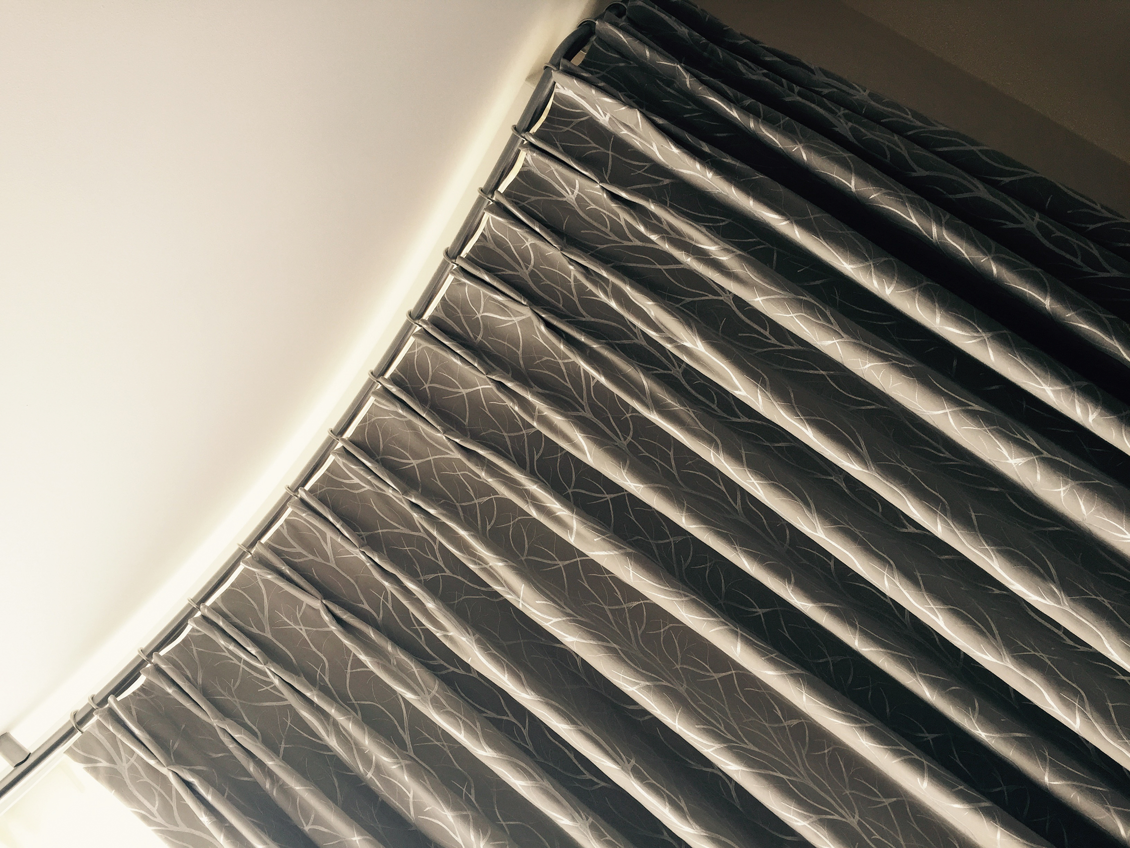 Double pinch pleat curtains on bespoke made to measure bay poles.