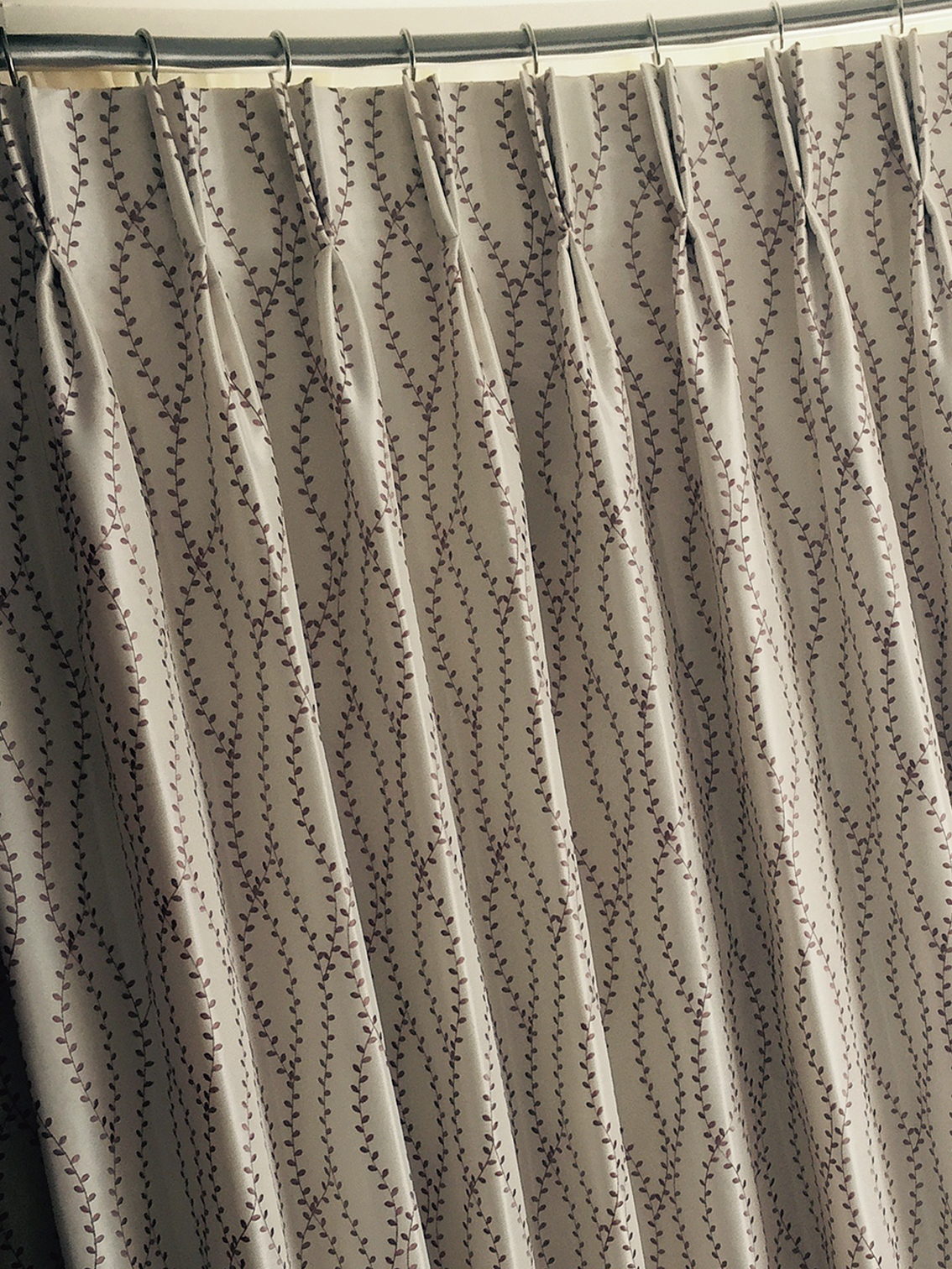 Sleek pinch pleat curtains with a coordinating fabric covered Mdf pelmet