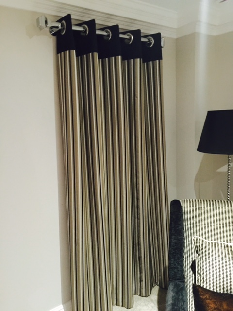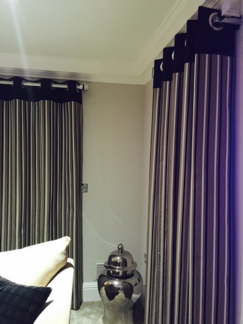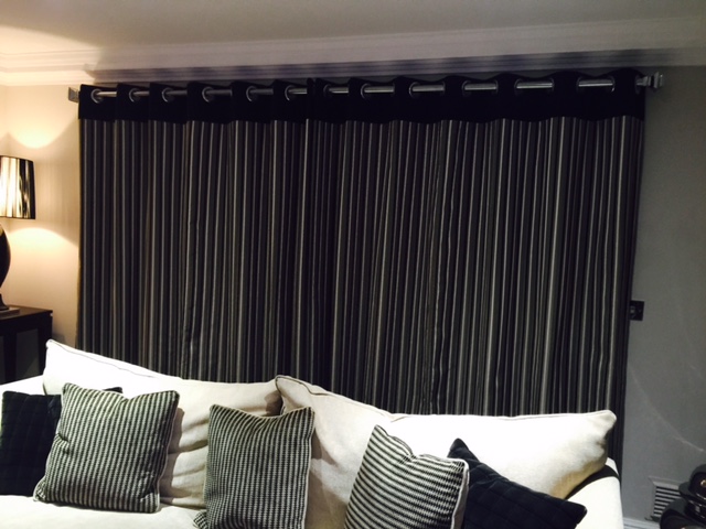 Sleek pinch pleat curtains with a coordinating fabric covered Mdf pelmet