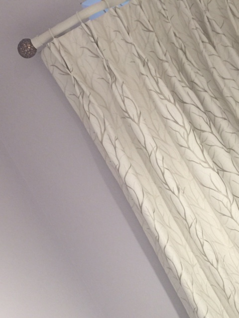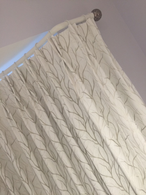 Pinch pleat curtains on a bespoke colour coded pole to fit your bay window.