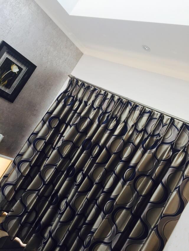 Sleek pinch pleat curtains with a coordinating fabric covered Mdf pelmet