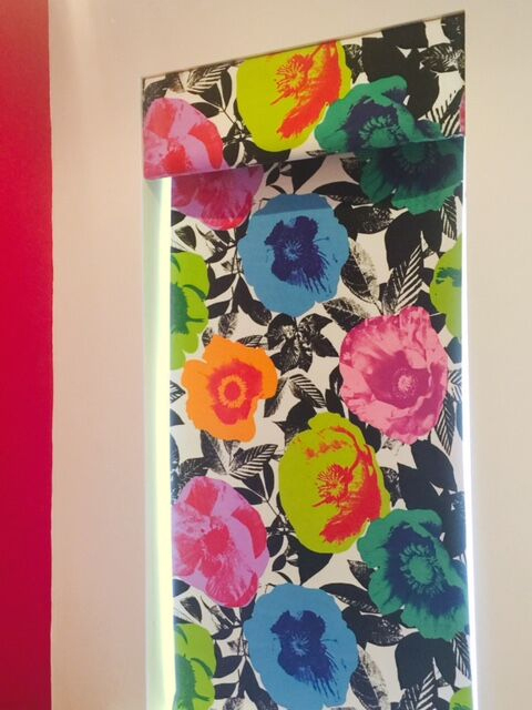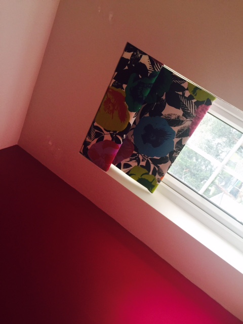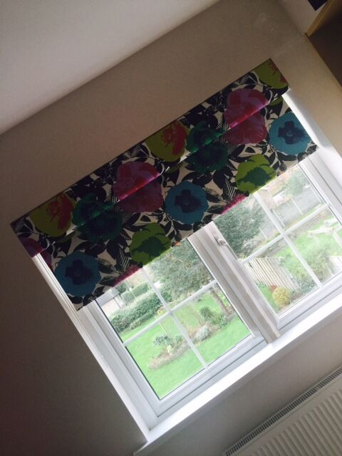 Laminated black out roller blinds with co-ordinating upholstered Mdf pelmets.