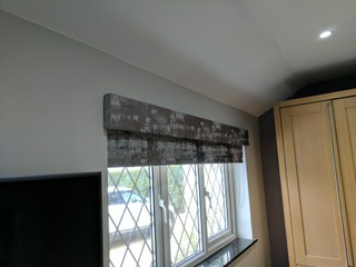 Velvet laminated blinds and coordinating Mdf pelmets – for a very sleek and smart finish.