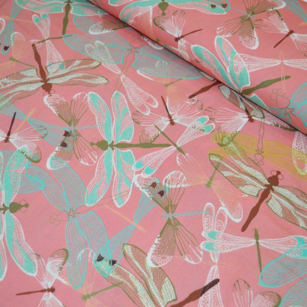 Damselfly Pink 100% Cotton Lawn 150cm/60″ wide by 1 mtr lengths